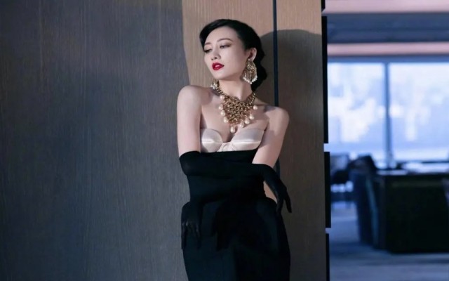 抹胸部分采用了香槟金色,与黑色的连衣裙相得益彰,既神秘又复古,还透露出一丝小女人的俏皮。这抹胸设计恰到好处地展现了王鸥的曼妙身材,那种呼之欲出的魅力,让人无法抗拒。尽管王鸥身材丰满,但她的胳膊却异常纤细,穿上这条裙子,更显得身姿绰约,毫无壮硕之感。