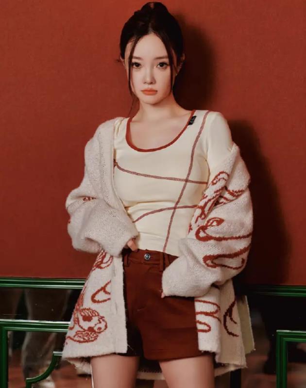 不过,最让人惊讶的还是她的下半身搭配!大冬天的,她竟然光着腿就穿了个超短裤!这操作,简直是让人大跌眼镜!虽然室内可能比较暖和,但这么穿还是需要相当大的勇气的。不过,效果却是出奇的好!光腿配短裤的造型,让她的双腿看起来更加修长纤细,和上面的中式上衣形成了鲜明的对比,既时尚又有个性,简直让人移不开眼。